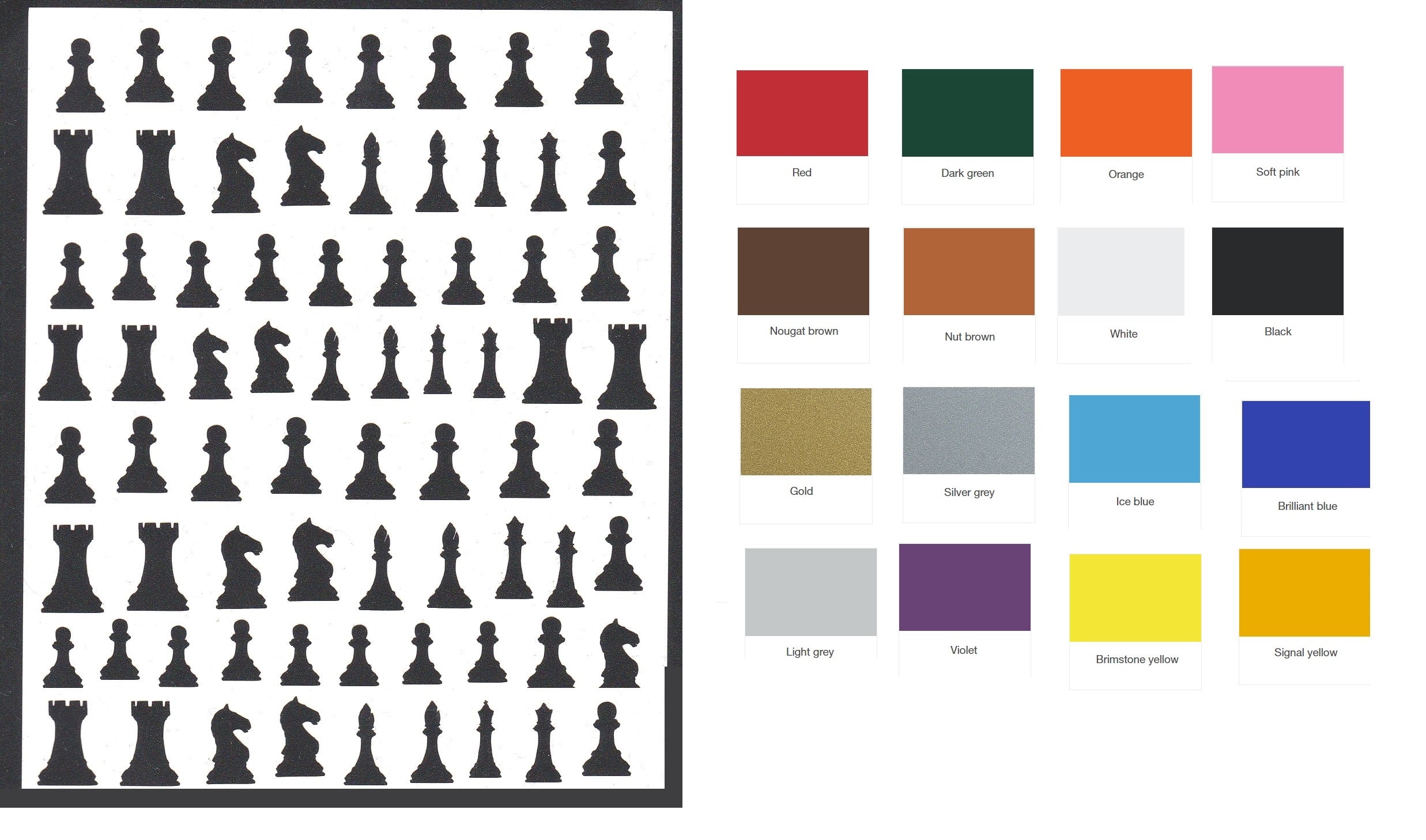 Chess Nail Stickers from £4.00 Colour Red Dark Green Orange Soft Pink Nougat Brown Nut Brown White Black Gold Silver Grey Ice Blue Brilliant Blue Light Grey Violet Yellow Signal Yellow Lavender Black and Green Qty. Add to Cart This item is currently on backorder but you can still purchase it now and we'll ship as soon as more become available. Sizes vary from 0.2 inches to 0.5 inches Simply Peel and stick and for a Glossy result and longer lasting add top coat Easy to Apply Instructions are below and will also be sent with the Stickers Tweet Previous Next