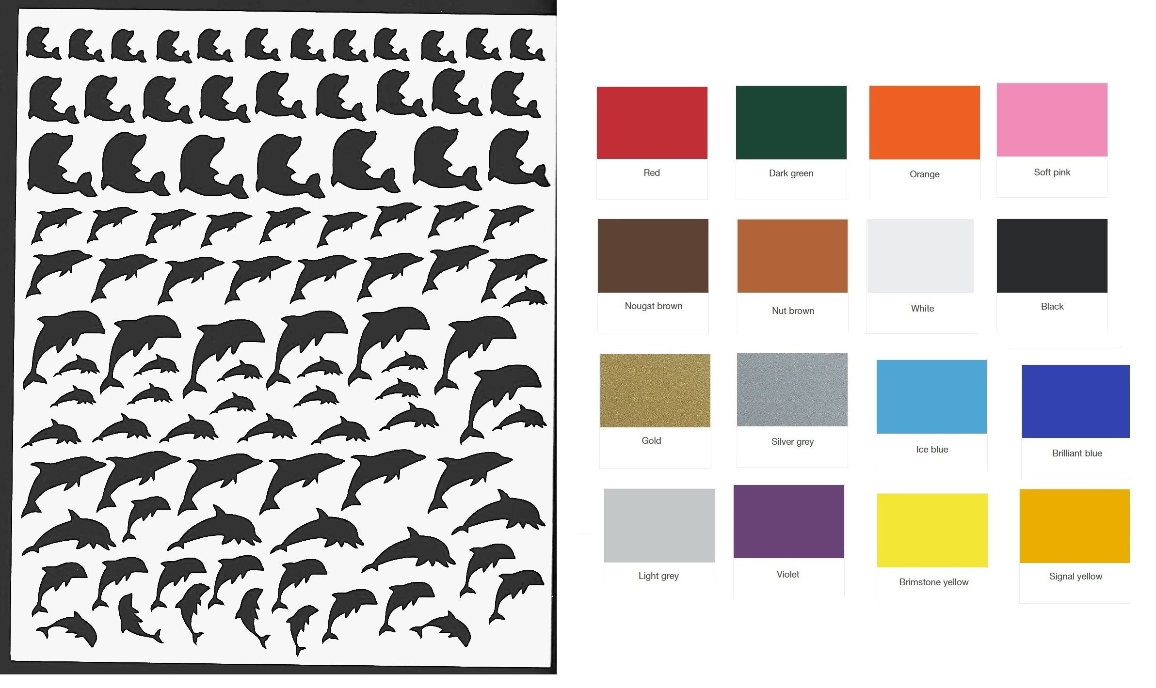 Dolphin Nail Stickers from £4.00 Colour Red Dark Green Orange Soft Pink Nougat Brown Nut Brown White Black Gold Silver Grey Ice Blue Brilliant Blue Light Grey Violet Yellow Signal Yellow Lavender Qty. Add to Cart This item is currently on backorder but you can still purchase it now and we'll ship as soon as more become available. Sizes vary from 0.2 inches to 0.5 inches Simply Peel and stick and for a Glossy result and longer lasting add top coat Easy to Apply Instructions are below and will also be sent with the Stickers Tweet Previous Next