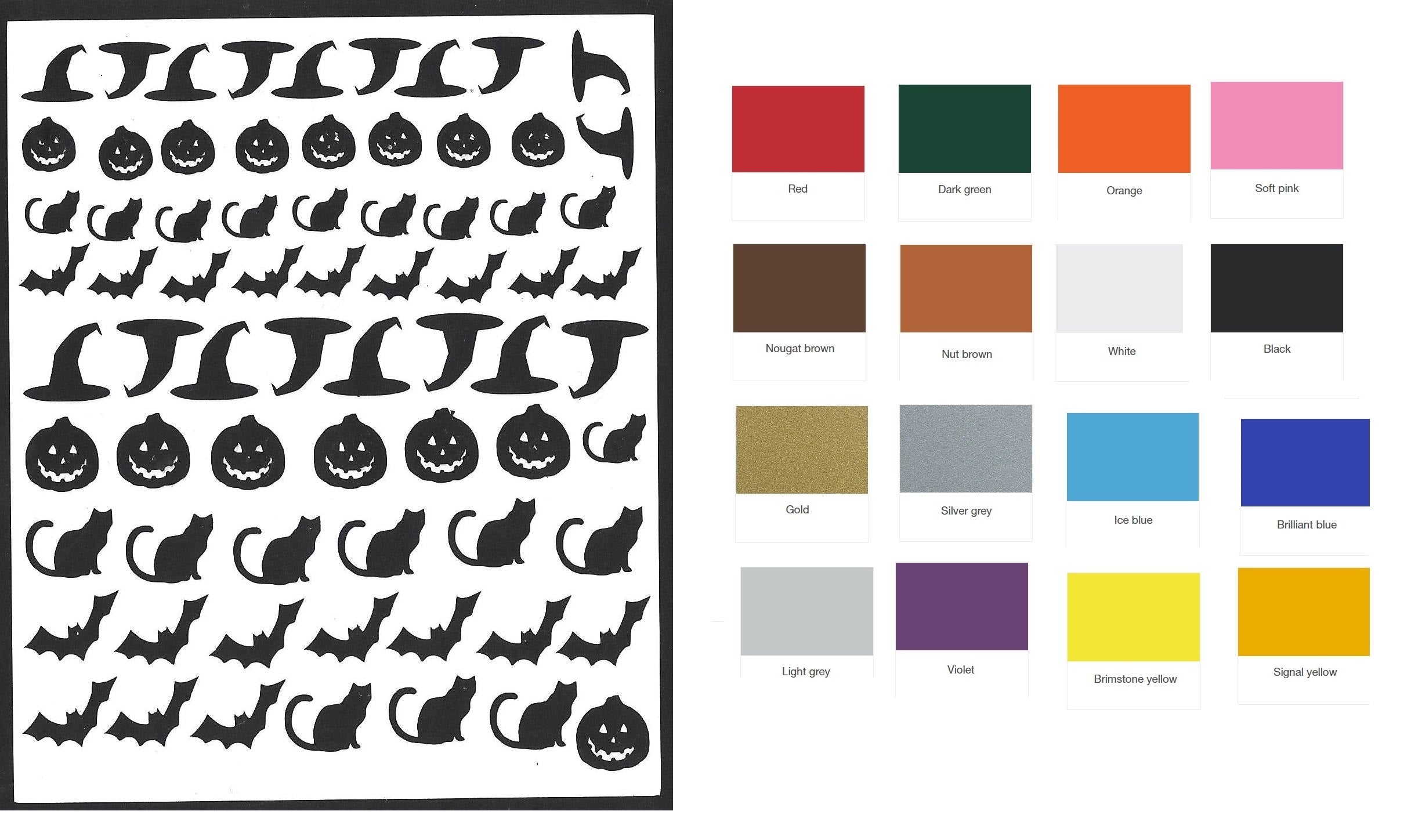 Halloween Nail Stickers from £4.00 Colour Red Dark Green Orange Soft Pink Nougat Brown Nut Brown White Black Gold Silver Grey Ice Blue Brilliant Blue Light Grey Violet Yellow Signal Yellow Lavender Multiple Colours Qty. Add to Cart This item is currently on backorder but you can still purchase it now and we'll ship as soon as more become available. Sizes vary from 0.2 inches to 0.5 inches Simply Peel and stick and for a Glossy result and longer lasting add top coat Easy to Apply Instructions are below and will also be sent with the Stickers Tweet Previous Next