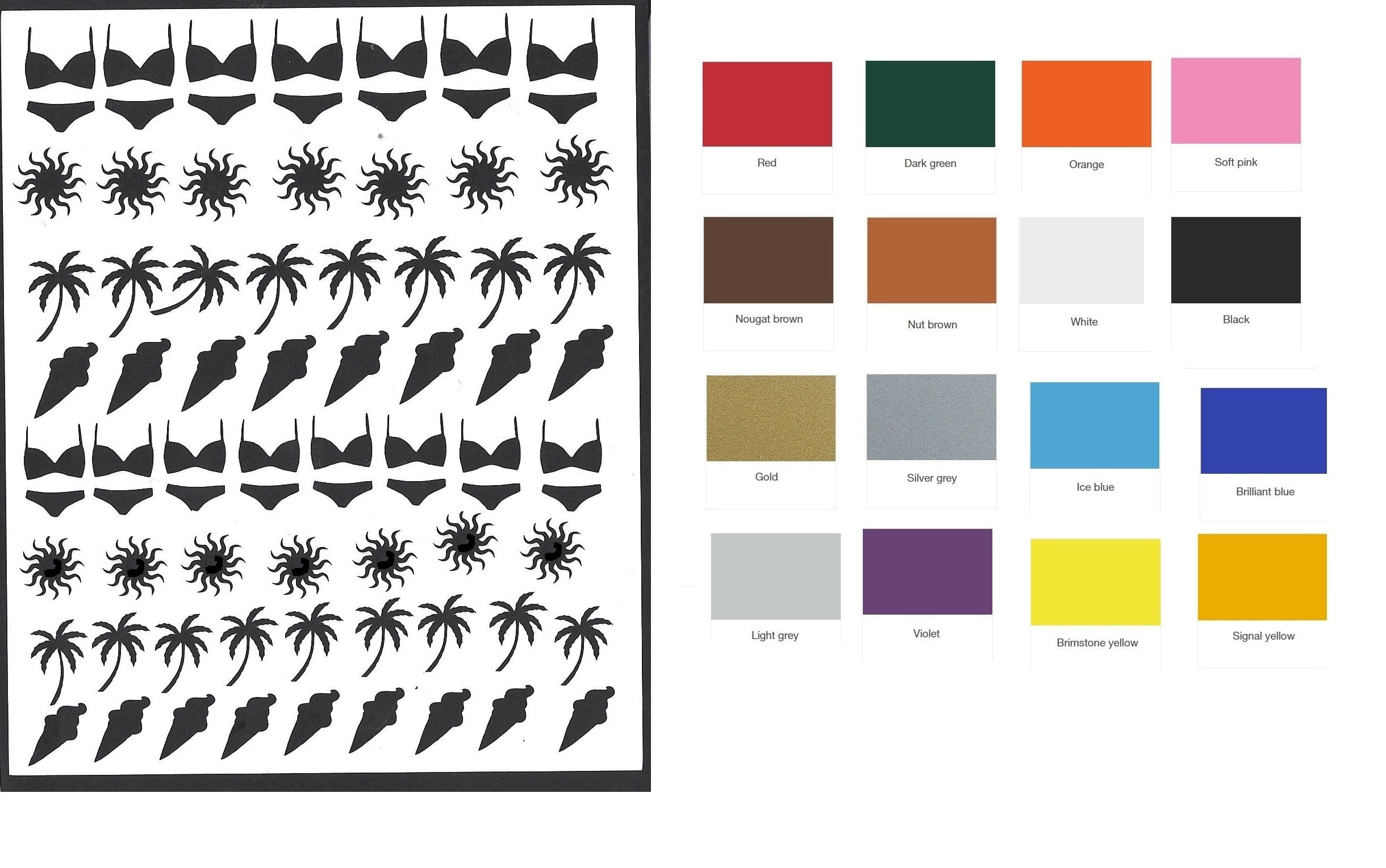 Summer Holiday Nail Stickers from £4.00 Colour Red Dark Green Orange Soft Pink Nougat Brown Nut Brown White Black Gold Silver Grey Ice Blue Brilliant Blue Light Grey Violet Yellow Signal Yellow Lavender Multiple Colours Qty. Add to Cart This item is currently on backorder but you can still purchase it now and we'll ship as soon as more become available. Sizes vary from 0.2 inches to 0.5 inches Simply Peel and stick and for a Glossy result and longer lasting add top coat Easy to Apply Instructions are below and will also be sent with the Stickers Tweet Previous Next