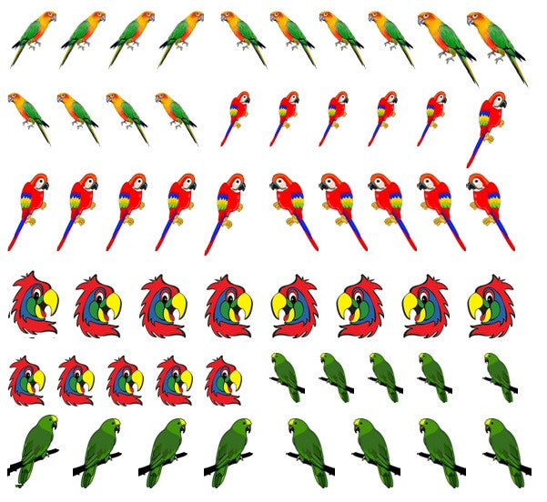 Parrot Nail Art from £4.00 Qty. Add to Cart This item is currently on backorder but you can still purchase it now and we'll ship as soon as more become available. Roughly 1.7 cm and 1.1 cm Easy to Apply. Instructions will be sent out with this product. WE CAN ADJUST THE SIZES AND IMAGES . Tweet Previous Next